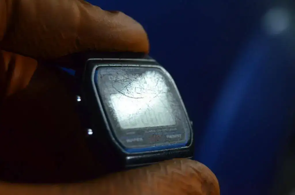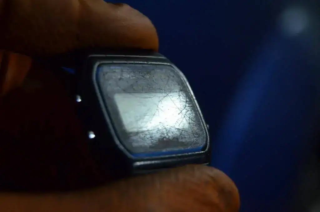 El cristal, después de pasar por las manos de un niño de 8 años, durante siete años (hasta que dejó de funcionar y lo guardé), imaginad cómo estaba.