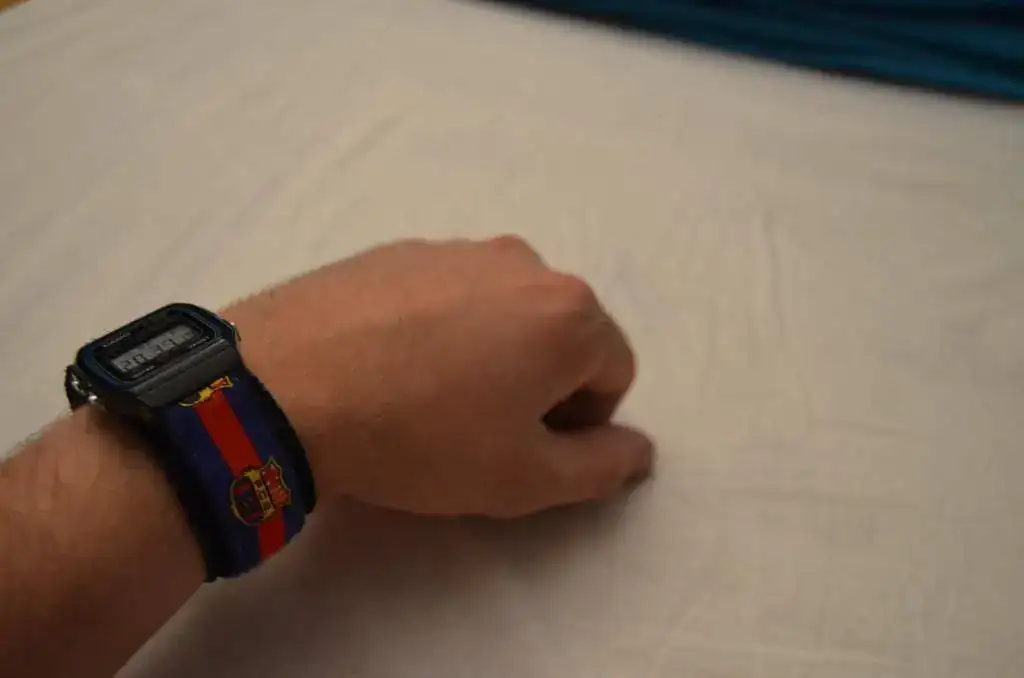 Comparad también el tamaño de muñeca que tenía con 9 años, cuando colocamos esta correa de velcro (el sobrante fue recortado, estaba a medida).