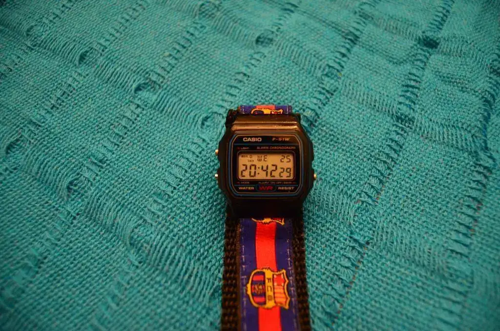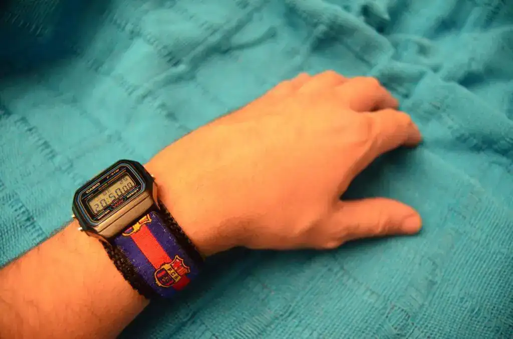 No seáis muy duros con la correa, cuando la de resina original se rompió (yo creo que duró un año), una prima mía me regalo esta correa de velcro del Barça, mi equipo favorito desde siempre (creo que, principalmente, por los colores del equipo) y así ha permanecido durante años y años, soportando agua y sol, verano e invierno, barro y sal, impasible. Creo que no me voy a desprender de ella jamás, ni voy a desprender a mi Casio de la misma (casi se me pasa por la cabeza colocar una de resina original).
