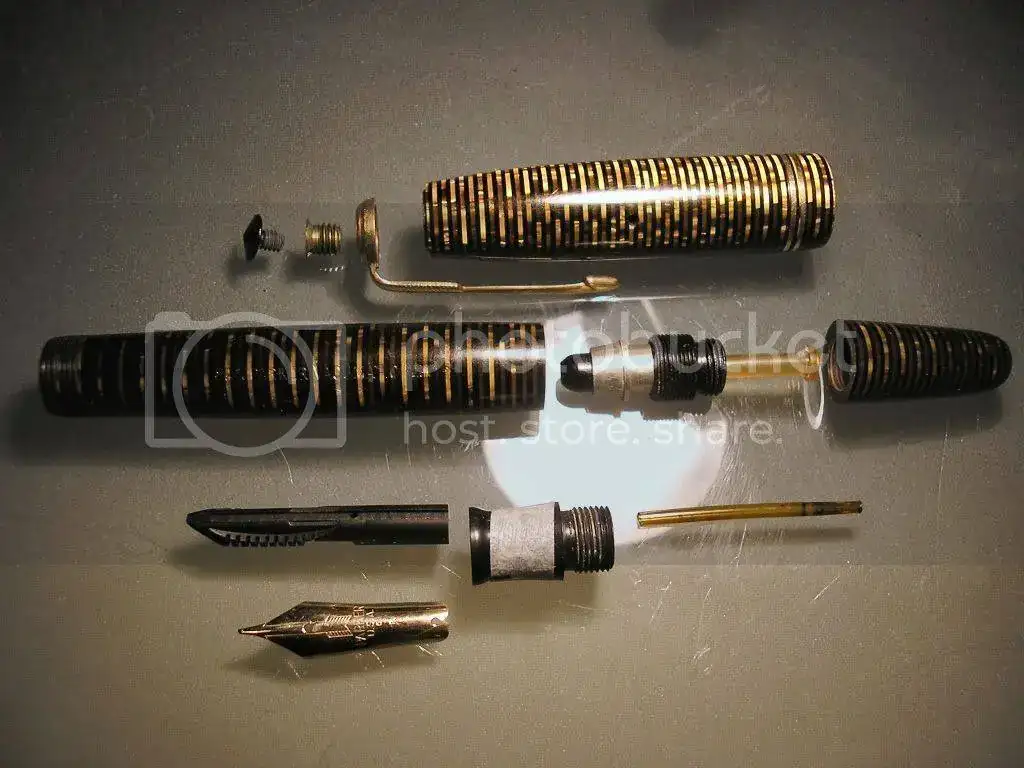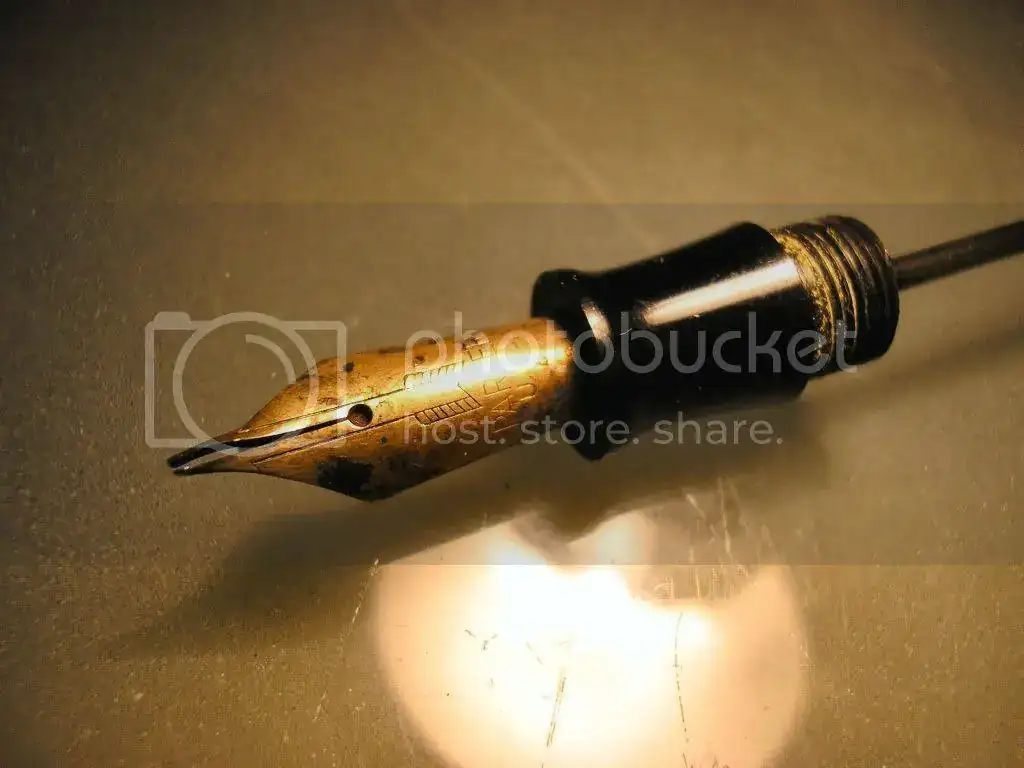 En esta ocasión llegó hasta mis manos una Parker vacumatic en celuloide marrón que aunque estéticamente esta bien tenía el problema de que el plumín se encontraba en un estado muy lamentable tal y como se puede apreciar en la fotografía siguiente.