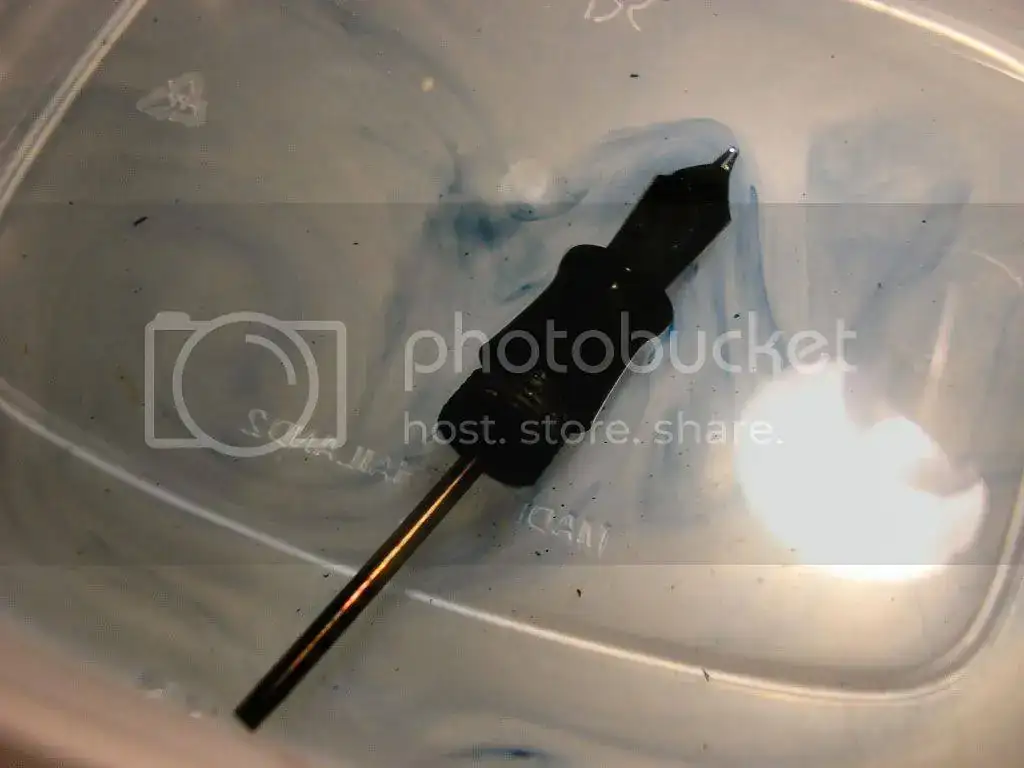 Lo primero que se le hizo al plumín fue someterlo a un baño con un poco de lavavajillas para que fuese soltando la tinta reseca e incrustada