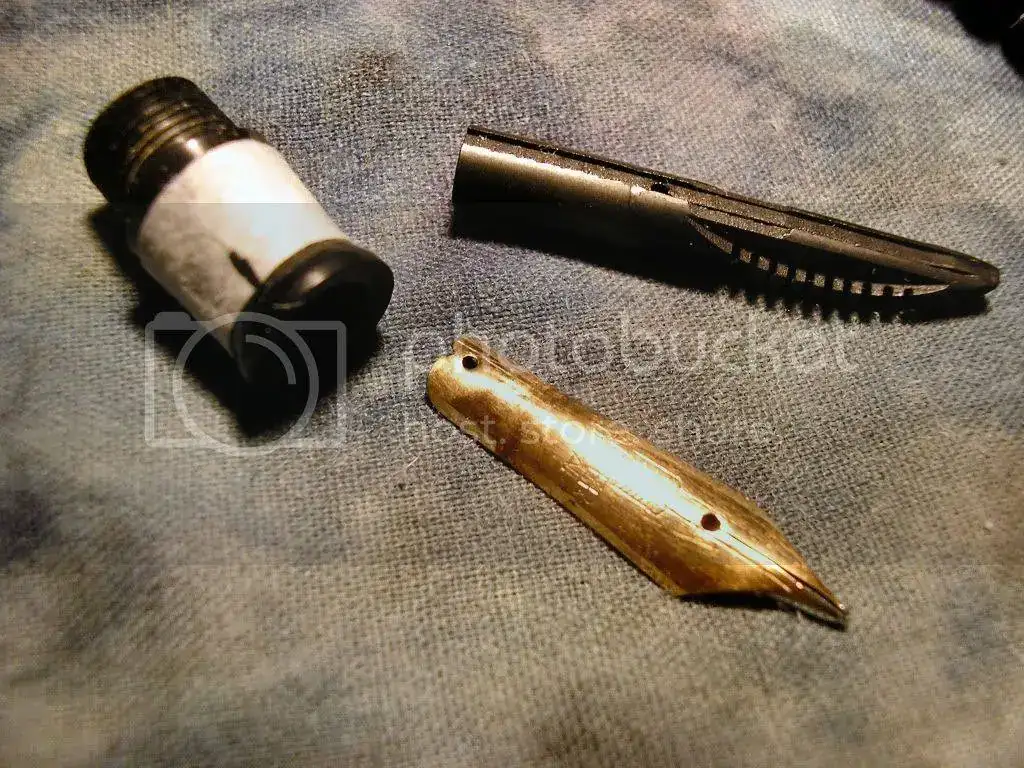 Una vez el plumin fuera toca un verdadero trabajo de orfebrería, con un poco de paciencia y ligeros golpes con un martillito se va enderezando y corrigiendo, el resultado fué mejor de lo esperado.