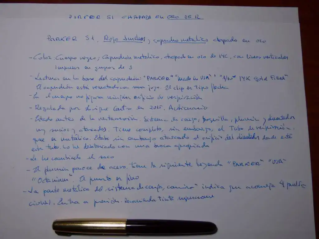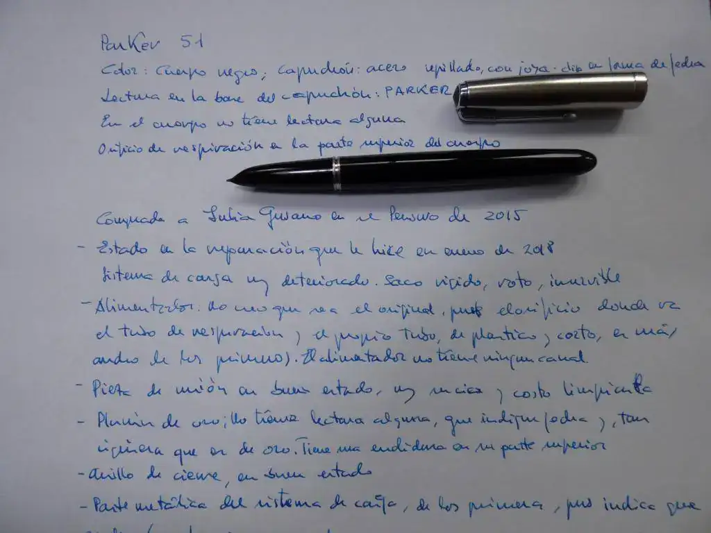 Esta mañana me he liando al manta a la cabeza y me he puesto a “restaurar” un par de Parker 51 aerométricas que tengo y que me parecía que no cargaban bien. Antes de nada, y en previsión de evitar en lo posible los errores de un patoso, he leído todo lo que he podido, fundamentalmente en el foro y de gran provecho e ilustración las colaboraciones de “El Pajarete Orquidiado”. Se trataba de entender cómo funcionaban, que elementos eran los más delicados y me podían dar más problemas. De paso me han servido para poder datar las plumas. Después he puesto manos a la obra.