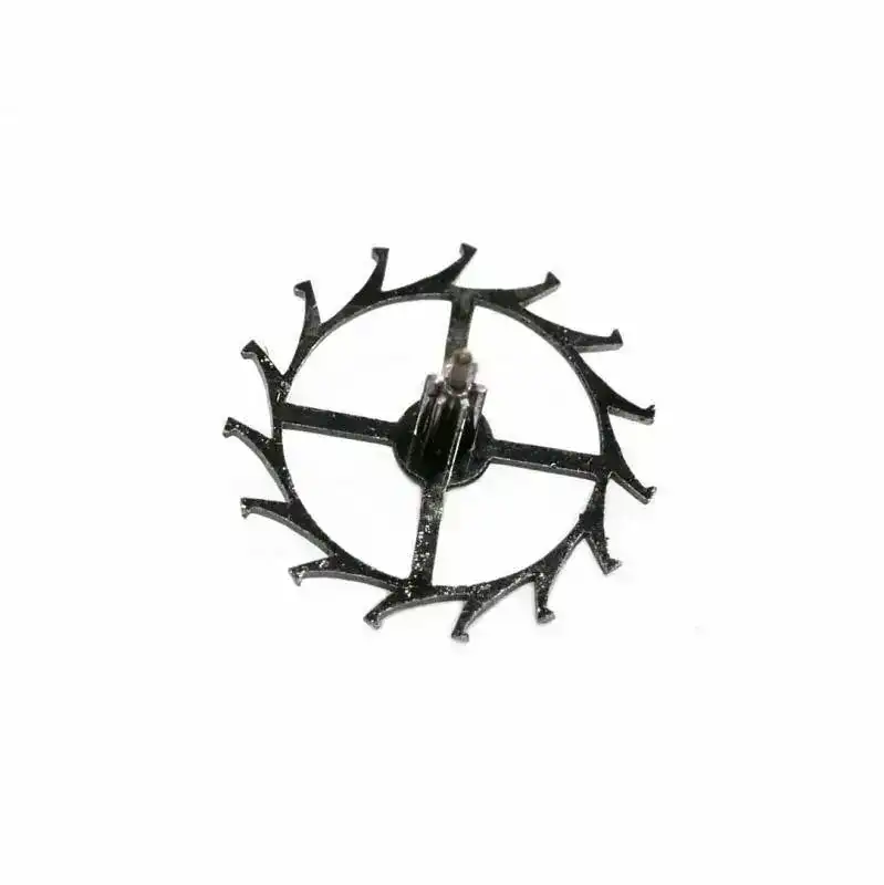 La siguiente figura muestra la rueda de escape y el piñón tomados de un movimiento Pobeda con un pequeño segundero descentrado (no conozco la referencia del movimiento).
