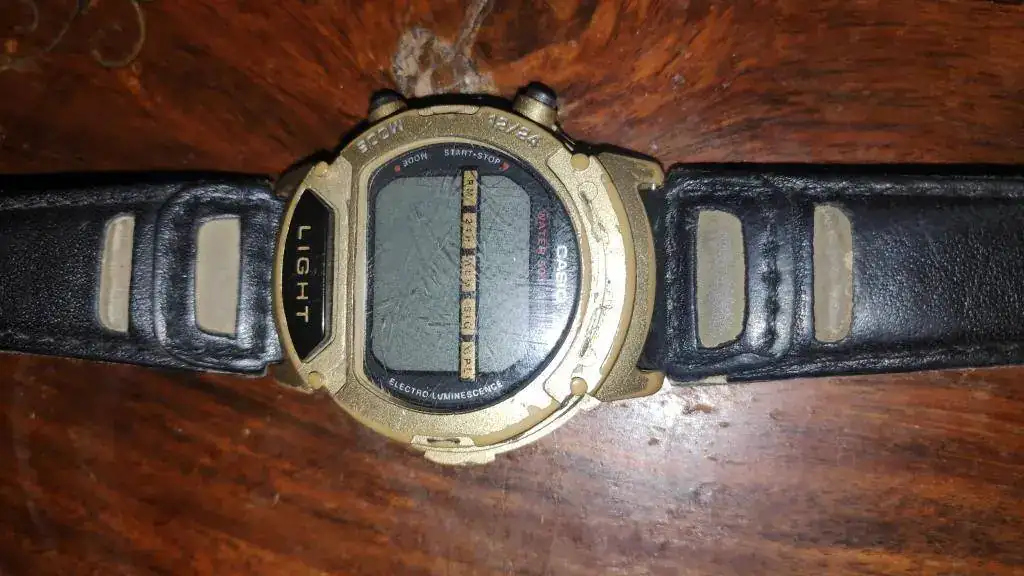 fue mi primer reloj, y estaba olvidado en mi antiguo cuarto con las pilas agotadas. Recuerdo que de un golpe se le rompió el plástico negro que le