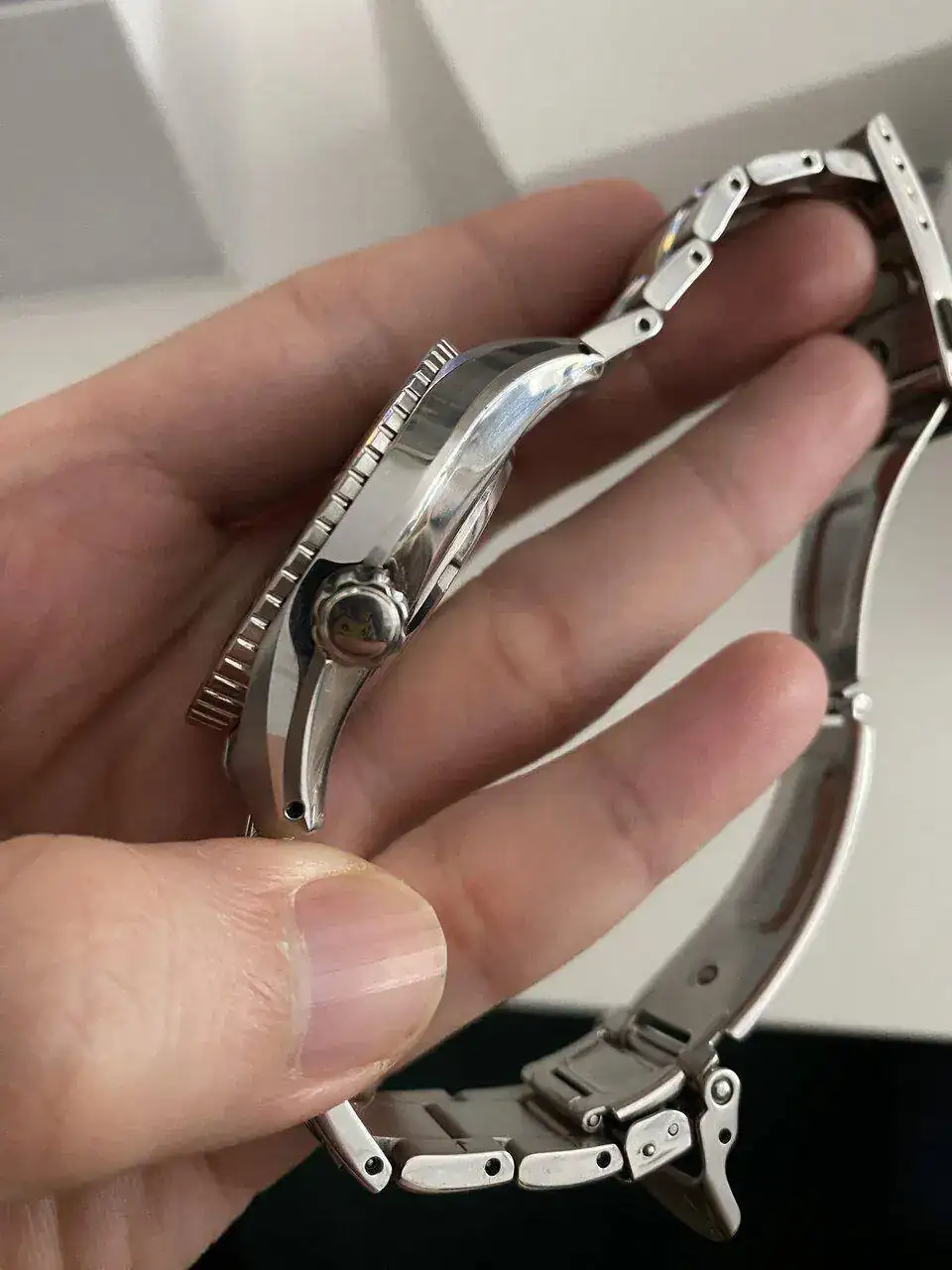 Viene directo de Suecia, con el bisel un poco marcado, pero me lo dejó a precio de derribo, por lo que no me pide resistir. Lo demás está casi impoluto, con toda la documentación, garantía sellada, ticket de compra y estuche.