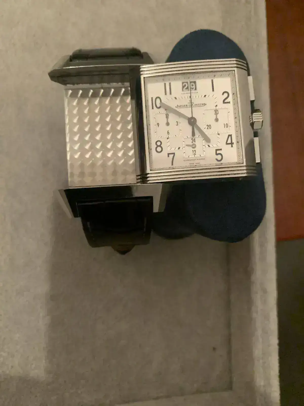 Si miramos a este Reverso, tiene la caja tipica de Art Deco como todos, pero la esfera no es la normal plateada con numeros arabiquos y los tipicos Index-Hands azulados (espada), esta esfera es totalmente en el estilo militar de los relojes Dirty Dozen de los anos cuarenta del siglo pasado, como la muestra de un JlC Dirty Dozen :