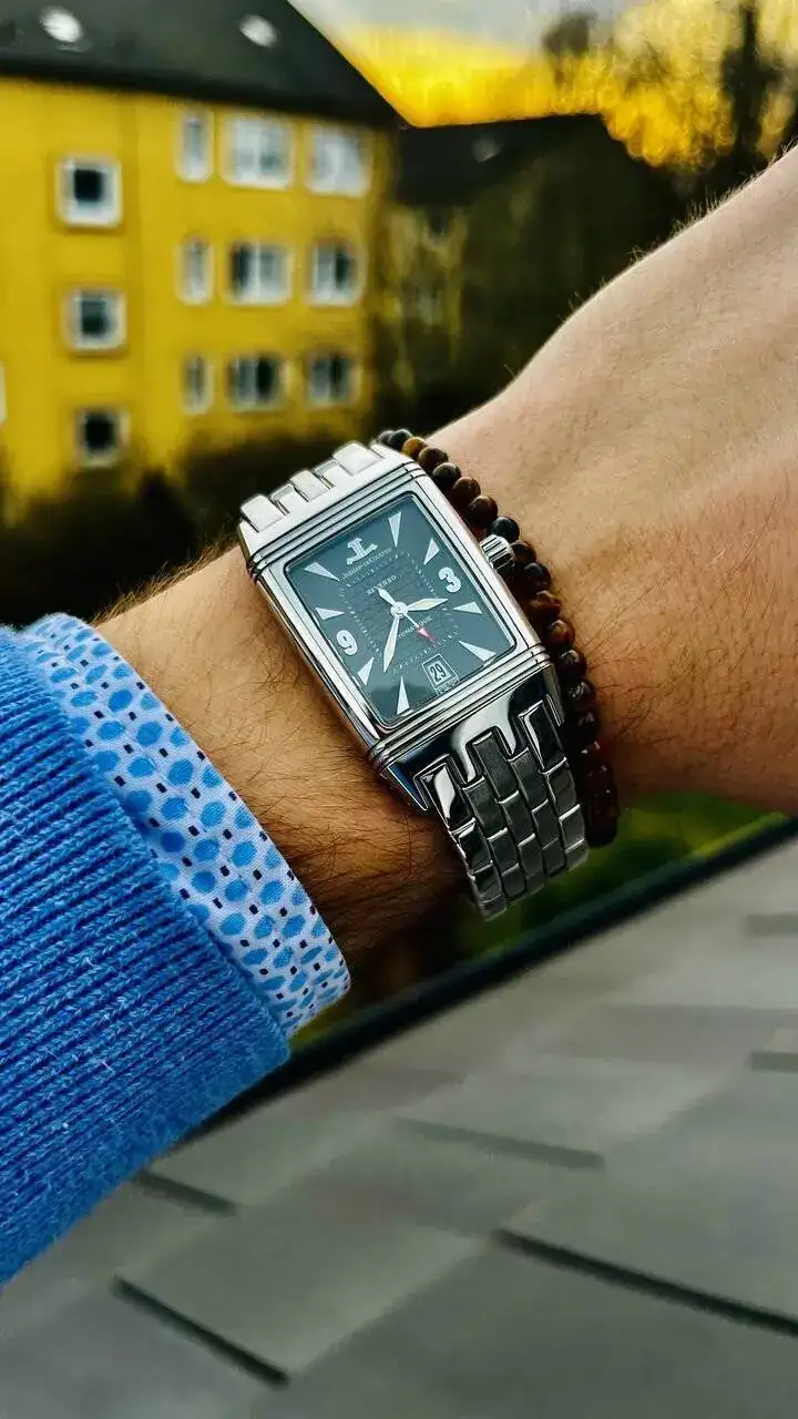 Puesto que mi Reverso Gran Sport (medidas 43 x 27mm) tiene una caja un tanto especial (abajo tenéis una foto), no puedo instalarle correas de fábrica de otras marcas. Y puesto que yo soy un freak de la personalización de mis relojes, me estoy volviendo loco buscando una solución para de vez en cuando poder cambiarle el look al reloj.