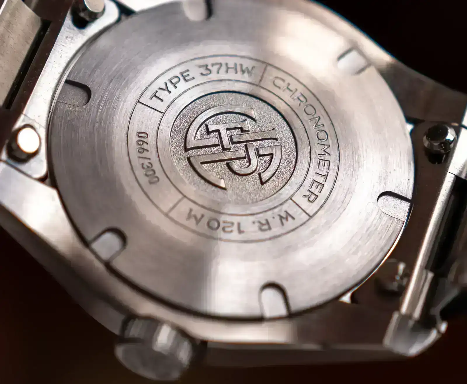 El Type 37HW está diseñado como un GADA, y sus especificaciones lo confirman. La caja de acero inoxidable 316L, con un revestimiento antiarañazos de 1.800 Vickers, mide 37,5 mm de diámetro, 9,8 mm de grosor (7,8 mm sin el cristal) y 45 mm de lug-to-lug. Al principio, dudé del tamaño, ya que prefiero relojes por encima de los 39 mm, pero me he dado cuenta que, con este diseño –con asas cortas y curvadas y un bisel ancho– sus proporciones contribuyen a una elegancia refinada. Una vez en la muñeca, se siente perfecto, con un carácter robusto pero elegante que lo hace versátil para cualquier ocasión.