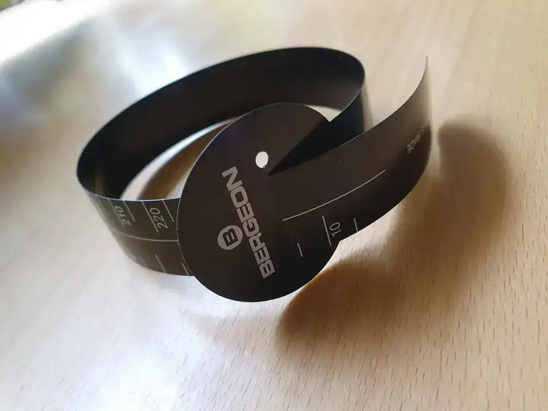 Cinta para medir 6789-N: Gracioso invento como de papel forrado en plástico para medir correas y muñecas hasta 23cm.