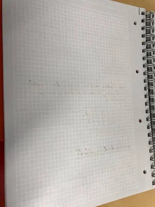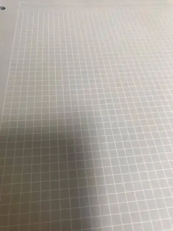 El papel es satinado, de 90 grs, con 90 páginas. De color gris suave y cuadrícula blanca, con la particularidad de que al fotocopiar la cuadrícula "desaparece".