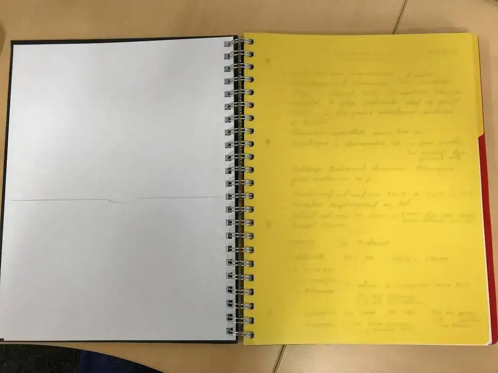 Este cuaderno en concreto es de tamaño A4, con tapa dura, espiral, separadores removibles, hojas separables microperforadas y con 4 agujeros para poder guardarlas en un archivador clásico de oficina. Tiene un bolsillo para guardar documentos y una goma para evitar que las tapas se abran.
