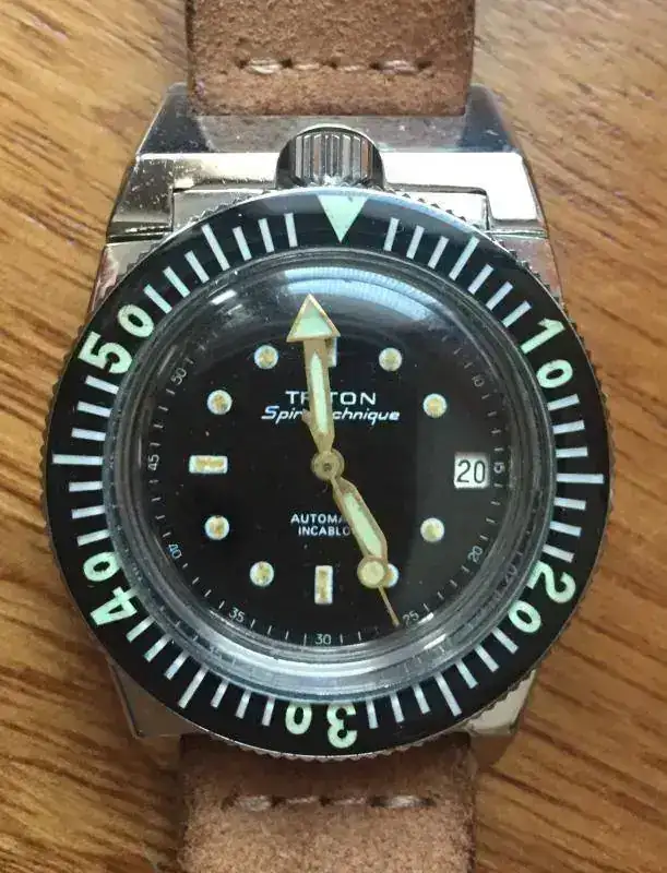 1963, ve nacer otra colaboración interesante : J. Parmentier (Coronel del Aire francés) y Jaques Cousteau (creador de la firma pionera en material de buceo : Spirotechnique), diseñan un reloj específico para bucear, el Triton Spirotechnique, elaborado por otra manufactura francesa: Dodane.