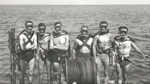 El desarrollo de las técnicas de buceo se debe a “Tres Mosqueteros” de la Marine Nationales : El propio J. Cousteau, Frederic Dumas y Philippe Tailliez