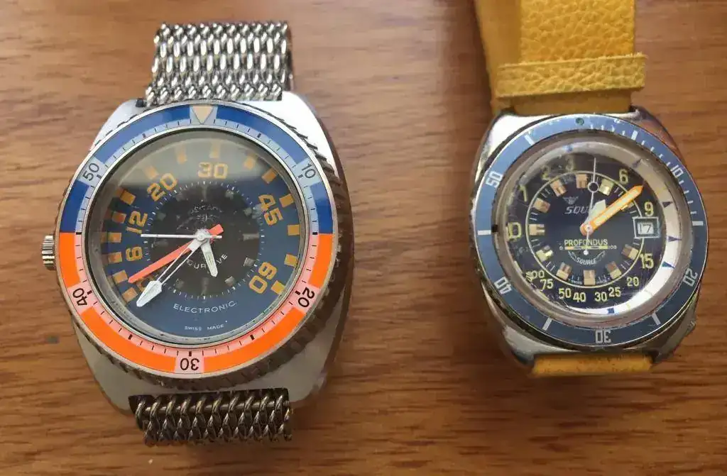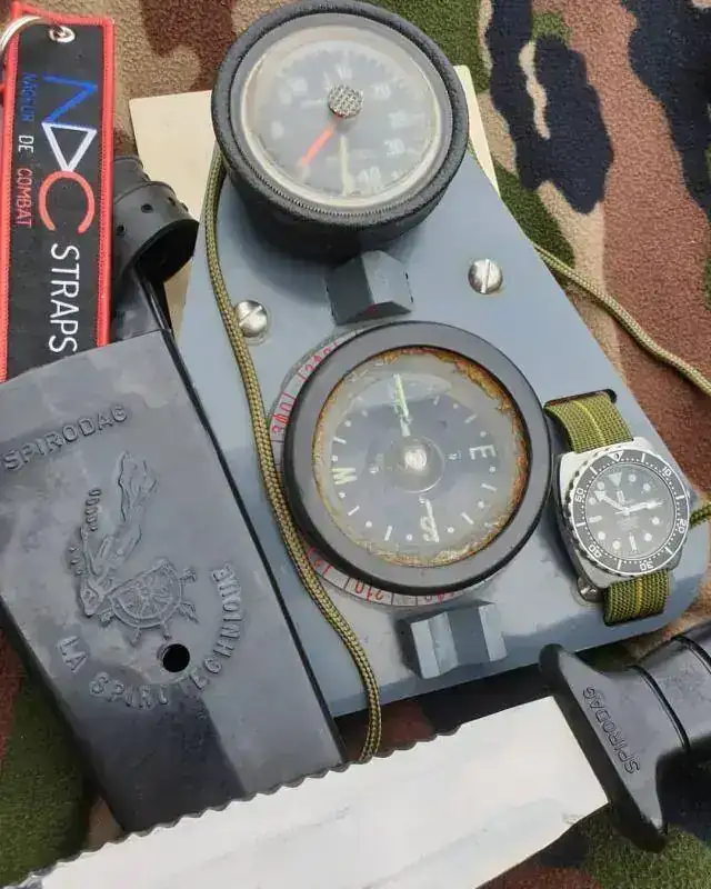 El ejemplo más representativo es esta unidad de la empresa pionera "Spirotecnique" desarrollada por el Comandante Cousteau. Estas unidades fueron las empleadas no solo por la Marina Francesa, sino por todas las unidades especiales de la Guerra de Vietnam, como las Special Force, MACV SOG, LRRP, Airborne Pathfinder, Marine Recon, Mike Force y Navy Seals. Mide 55x67 mm y marca hasta 80 metros. Esta unidad con su correa original data de 1960
