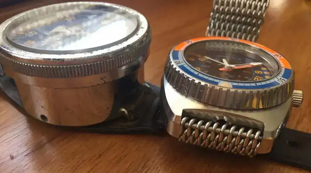 Pues bien, en un primer momento la industria ofrecía dispositivos independientes con función de Profundímetro basado en sistema de Tubo de Bourdon. El buzo disponía en sus muñecas o en una tablilla de navegación los diferentes instrumentos de medición: reloj, Profundímetro, Brújula, etc..