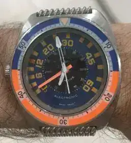 Posteriormente a finales de los 60, varias marcas lanzan relojes con profundímetro incorporado. Nivada, Favre Leuba y Aquadive son las pioneras. El sistema más fiable sigue siendo el Tubo de Bourdon, y de entre los diferentes modelos destaca el mítico Aquadive TimeDepth Model 50. Este monstruoso reloj de 46 mm incorpora un calibre ESA 9154 Dynotron Electromecánico, es decir una pila de cuarzo alimenta el movimiento de una rueda de balance como en un reloj mecánico. Fue fabricado por la empresa ubicada en California y especializada en equipamiento de buceo "Aquadive" y en su dial se mostraba un marcador similar a un velocímetro con marcas hasta 220 pies. Esta unidad mostrada se fabrico para ser comercializada en Europa por la firma ROTARY, y la marcación se transformo a metros, por lo que el dial aparece marcado hasta los 60m, son muchos más escasas . Este reloj pese a la contundencia de la caja solo tenia una resistencia de 100m, no obstante fué una autentica herramienta de buceo.