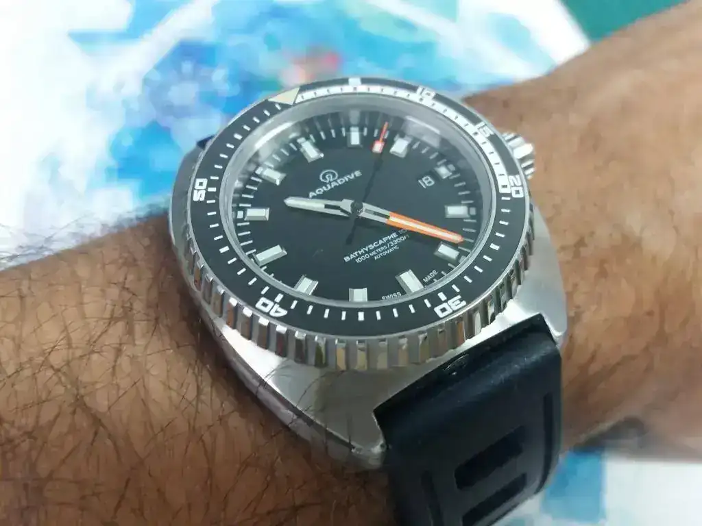 Acabo con las conclusiones finales que no son mas que un resumen de lo que ya he comentado más arriba, de lo que para mi es un reloj a tener muy en cuenta, a pesar de lo desconocido y poco visto que es. Aquadive nunca fué una marca relojera popular y de gran difusión y sin embargo llegó a ser apreciada por los submarinistas de los años 70’s, que valoraron la resistencia de un reloj con una caja compacta y de gran solidez que daba a los submarinistas una gran hermeticidad y una resistencia a los golpes que pudieran producirse en las inmersiones. Además de un profundímetro que fué muy apreciado entre los buzos de la época. Hoy después de haber sido resucitada sigue siendo una gran desconocida, aunque los coleccionistas estan dispuestos a pagar grandes cantidades de dinero por los modelos vintage. Y que queda de todo ello y que es lo que la hace tan apetecible después de haber resucitado, pues una caja muy bien construida, unos acabados de gran calidad e impecables, y un calibre de acabado top muy bien ajustado que pone el reloj en una precisión en niveles COSC. Su característica caja y su bisel con una forma que lo distingue de otros divers, le da un sello distintivo que lo hace inconfundible de otros divers. Si tuviera que resaltar algún punto negativo destacaría que Aquadive es una marca poco conocida y mal posicionada en el cada vez más amplio panorama relojero y que tiene un precio elevado difícil de justificar a pesar de las altas calidades que ofrece. Sin embargo cuando tienes este reloj en las manos no piensas en el precio y te das cuenta de la calidad que respira por todos lados.