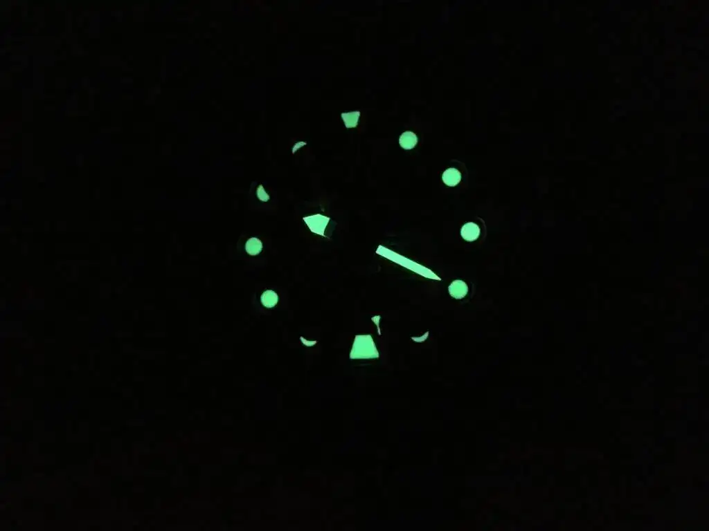 Las agujas e índices son también discutibles, a algunos le parecerán demasiado cortas, a mí no. A otros, entre los que me incluyo, los índices nos resultan demasiado pequeños e iguales. Esto me afecta para la lectura nocturna, pues aunque el lume es bueno y persistente, sin gafas los miopes vemos la luz en forma de estrella de noche, por lo que me cuesta ubicar la hora de una mirada rápida, tardo un par de segundos.