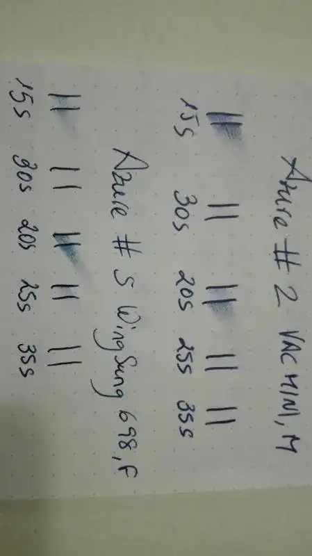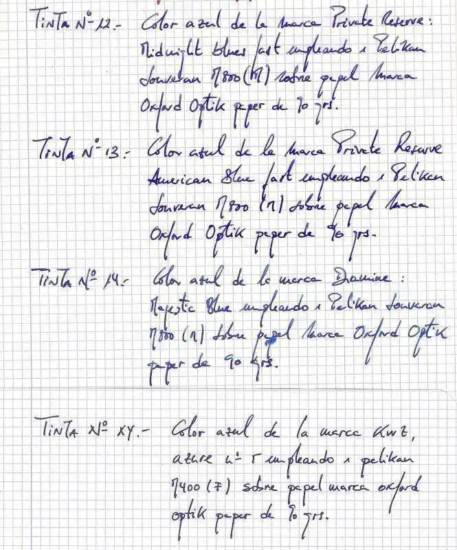 La pongo comparada con otras que tengo, es mas oscura que el resto y hace unos veteados al estilo de la majestic blue de diamine pero sin pasarse. La imagen no hace justicia pero es algo!