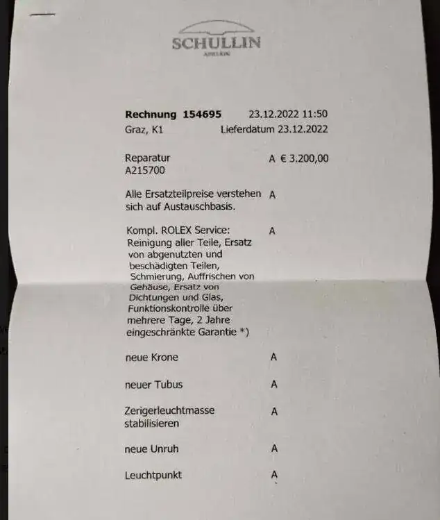 Muy interesante esta factura de un Submariner 1680, creo la revision esta hecho en la casa Rolex en Suiza. Este Conze no hace una revision tan profunda, lo mandan a la casa Rolex.