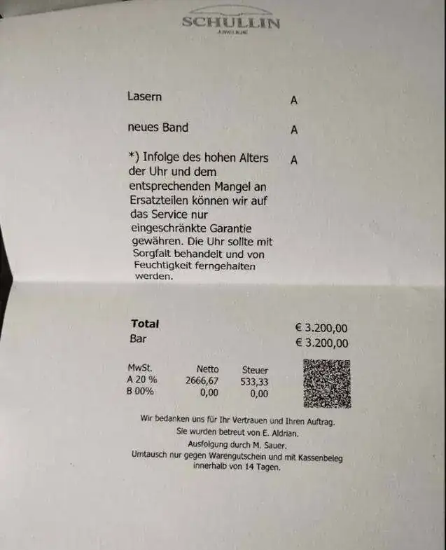 Entonces, un Submmariner del 1979 con una revision/restauracion por 3200,- (precio de las piezas en cambio con los viejos, con que se quedan ellos), no puedes entrar al aqua y tienes que mantenerse alejado de la humedad.
