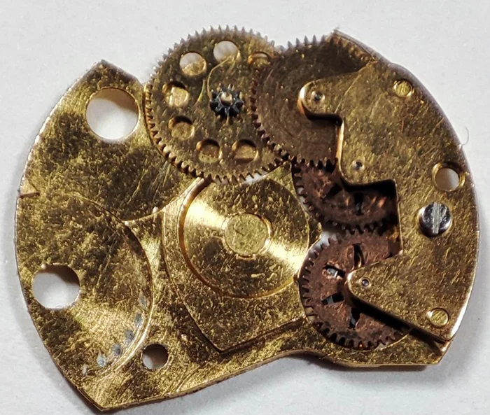 El dial estaba bastante maltrecho, con algún rayón y lo peor es que le faltaban los tetones de anclaje al movimiento, con lo que tuve que pegarlo con diminutos trocitos de adesivo de doble cara, el sistema de tirete (típico de la serie 24--) estaba gastado con lo que se salía la tija, habían intentado pasarla no se como, pero de alguna manera muy bestia.... por suerte las piezas en peor estado las tenía que sobraron de alguna otra reparación, también estan algo gastadas y si no vas con cuidado se sigue saliendo la tija.