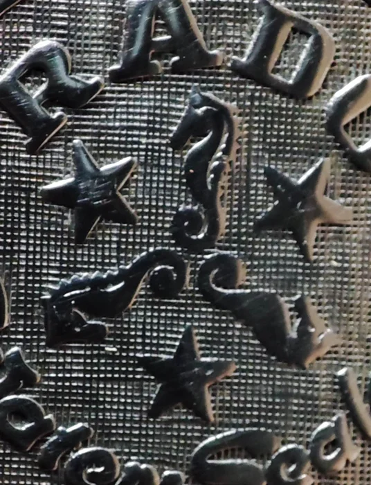 La tapa trasera que es a rosca, luce un bonito relieve con tres cavallitos de mar, que de cerca se ven bastante bien acabados!