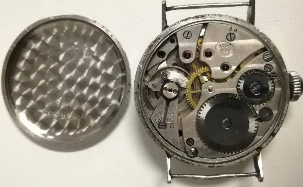 Hoy le toca salir a este fantástico Revue con marcado caracter militar. Monta un calibre Revue 59, uno de los miticos calibres manuales. Funciona muy bien. No decepciona.