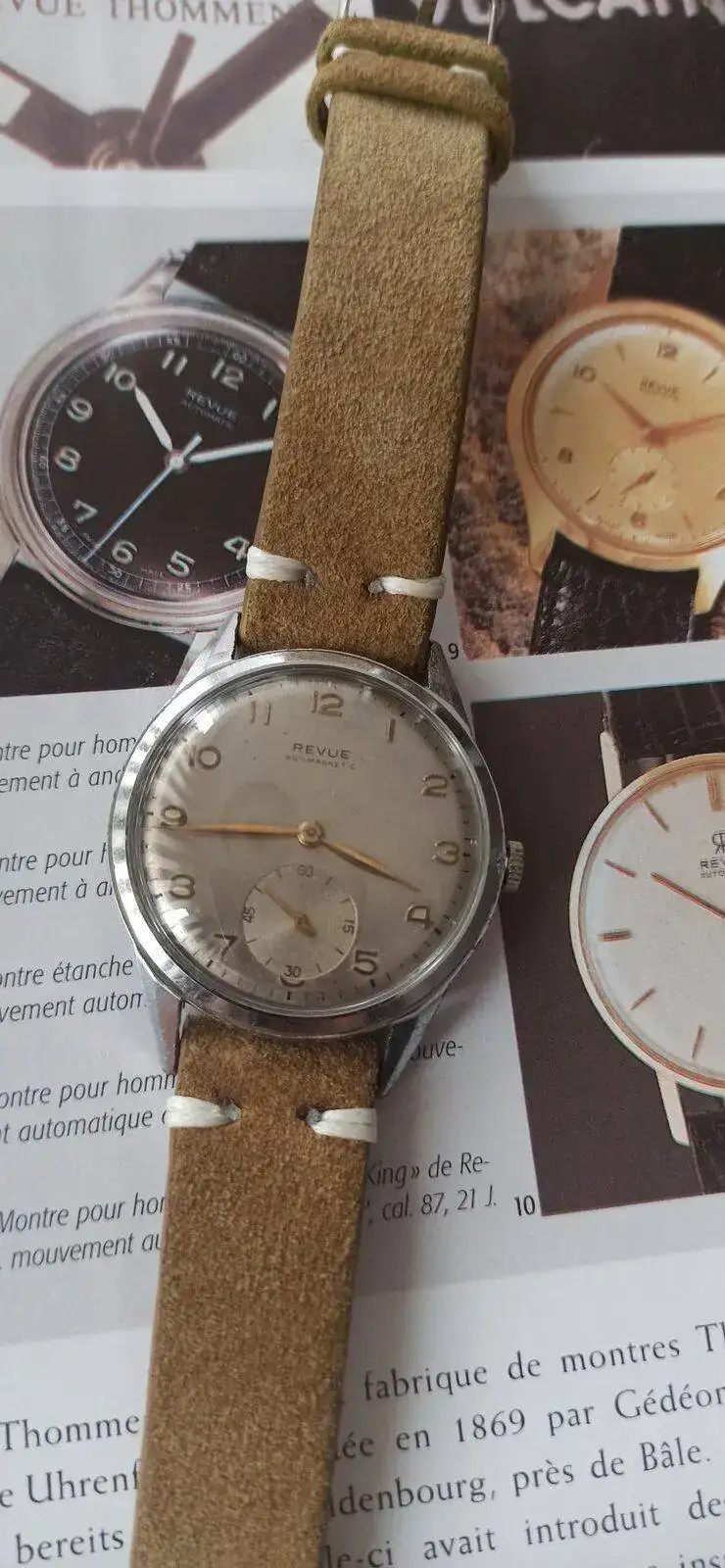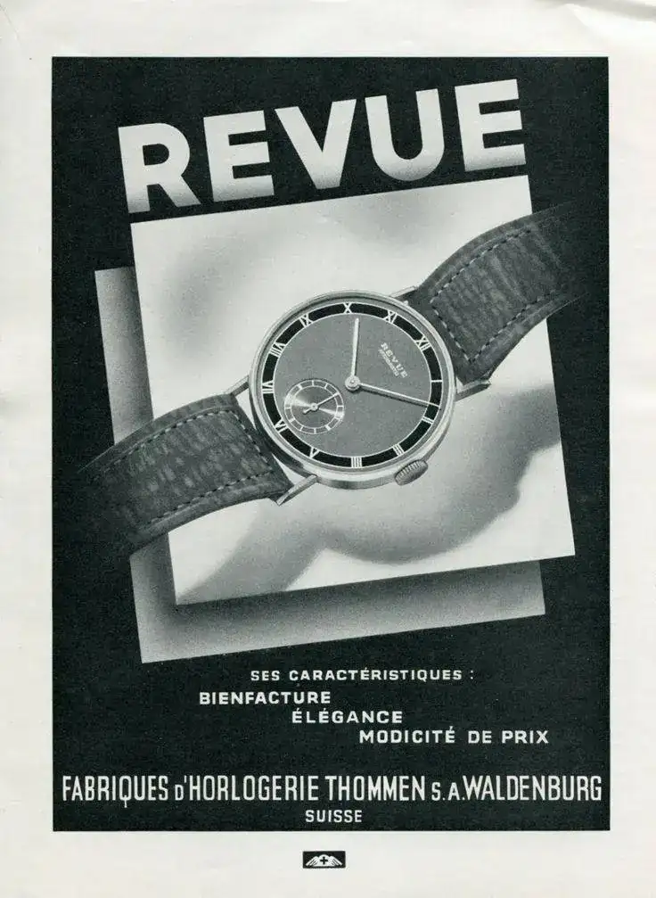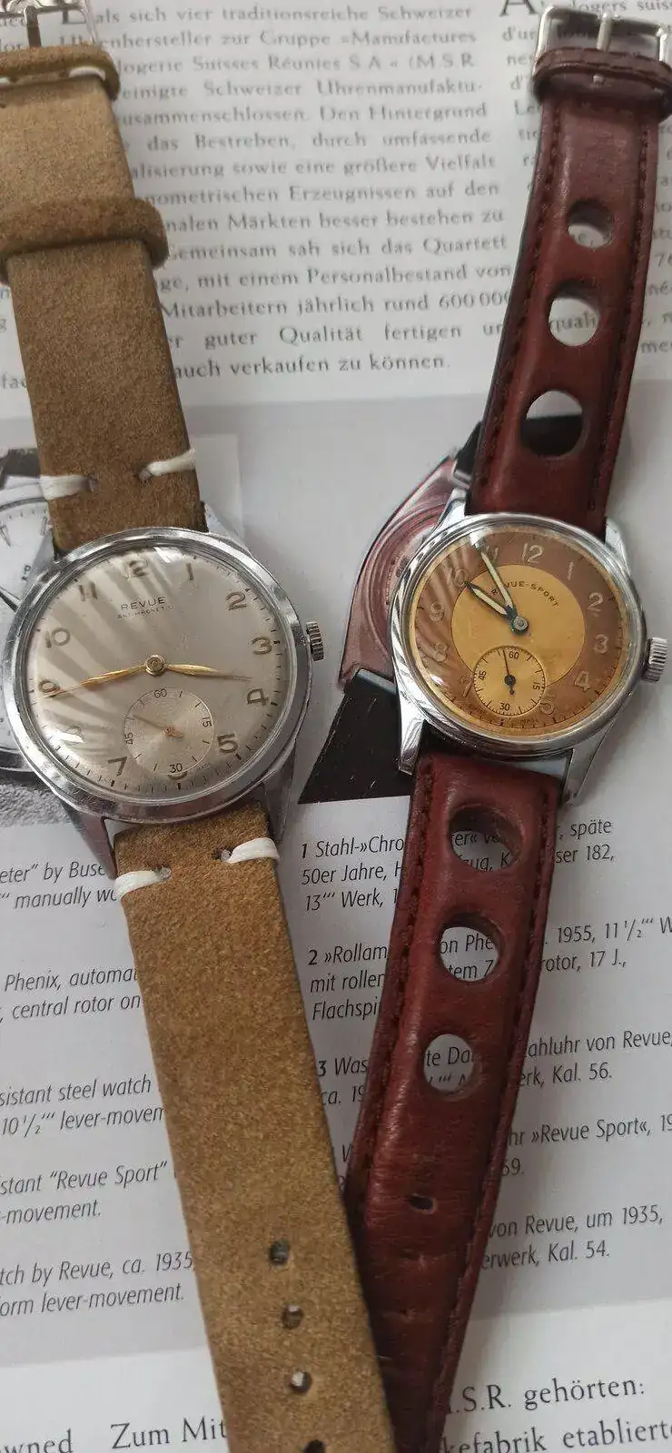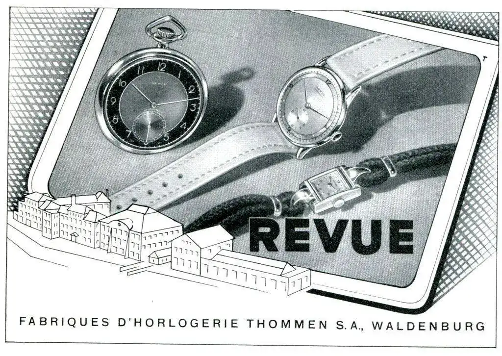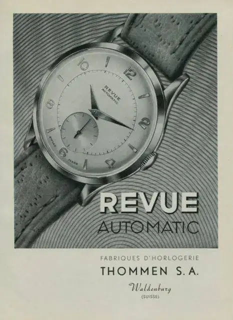 Como sabéis, Revue es una marca con tradición relojera que manufacturaba sus calibres, y éstos eran movimientos de bastante calidad. Perteneció al grupo MSR, que tampoco os descubro América cuando os digo que MSR, Manufactures d’horlogerie suisses réunies SA, era un grupo de “relojes Shweizer” que se unieron en 1961 y que incluía a Phénix Watch Company, a Revue Thommen, a Vulcain y a Buser Frères & Cie.