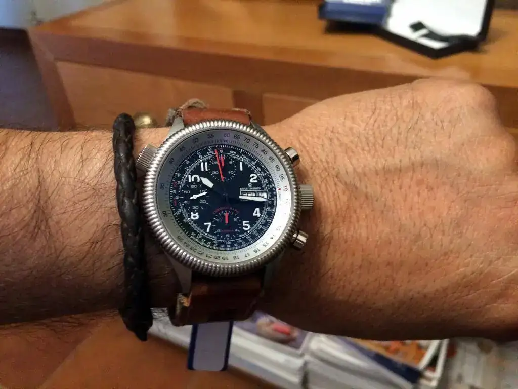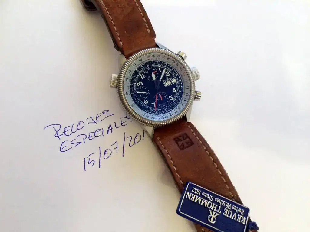 Vendo este espectacular pilot de la marca Revue Thommen con calibre Valjoux 7750. El reloj es de 2008 pero se encuentra en un estado de reestreno. No tiene marcas de uso y su estado de marcha es perfecto. El crono funciona perfectamente y resetea perfecto. Lo entrego con la correa original de cuero que no tiene uso más una milanesa y una correa de cuero artesanal que le queda de escándalo.