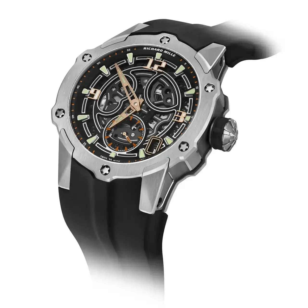 Es el caso del RM-33-03, que aun siendo redondo mantiene un innegable vínculo con el ADN de la marca: basta ver su perfil. Y hasta ahí, porque en su interior presenta el nuevo calibre esqueletizado RMXP3, ultraplano (3,28 mm de grosor) gracias a un micro rotor monobloque descentrado de platino macizo bidireccional, que optimiza la eficiencia energética al tiempo que mantiene la compacidad del conjunto.