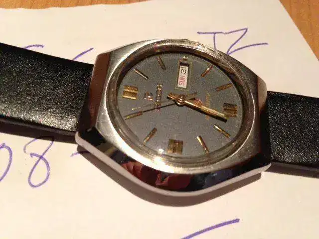 Ricoh años 70 , 38.5 mm de diámetro sin contar corona , correa y plexiglas nuevo , maquinaria revisada , pulido y en un estado inmejorable , ideal para llevar un autentico clásico en la muñeca , puesto en casa por el precio de 95 euros o recoger en mano en Girona .