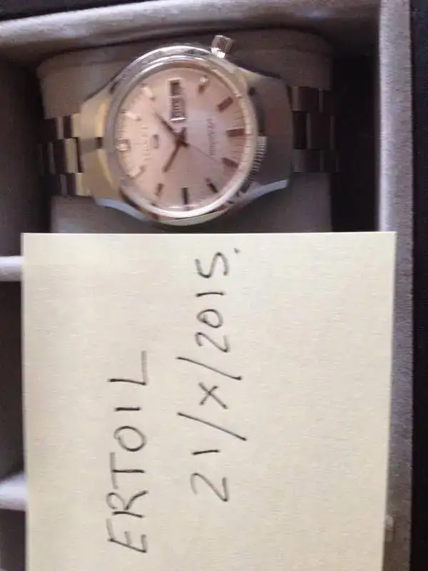 "Este reloj goza de excelentes acabados y calidad. No es "morralla" India. Es totalmente original y gama alta de Ricoh. Está en estado NOS. Perfectísimo. Esfera plateada. Corona firmada. Lo he tenido años con la corona sacada en la caja, pero la pila ha llegado a su fin. Has de poner pila nueva e ir a un buen relojero para que no te lo marque al abrirlo, porque seria una pena.