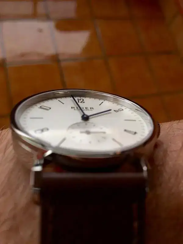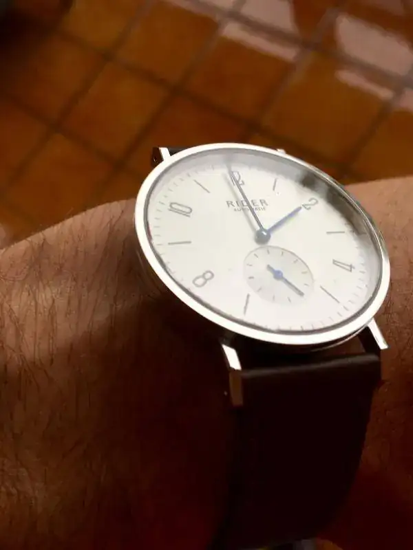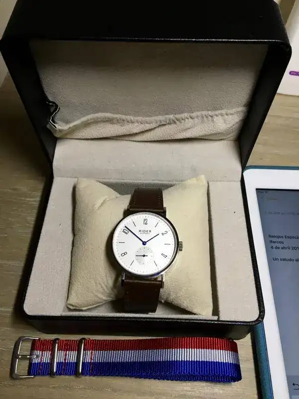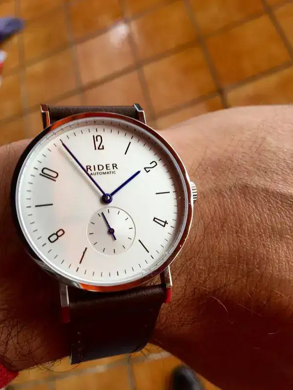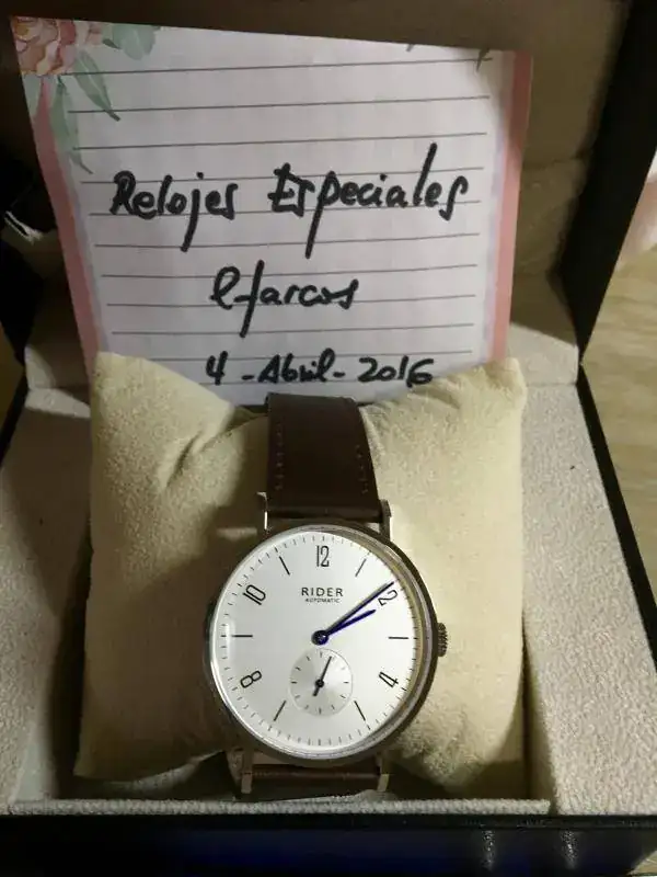 Os ofrezco este modelo tipo "Rodina" pero con la nueva marca de 'SeaGullWatchStore' Rider (el Rodina "original" es de 'SeaGullWatchStore'). Según correo-e recibido de Sea-Gull, ambos modelos son exactamente idénticos, excepto por el nombre que en el caso del Rider está escrito con la misma tipografía que los números (más apropiado con este estilo bauhaus). El reloj está de reestreno, puesto que sólo se ha usado en 2 ocasiones. Nada más.