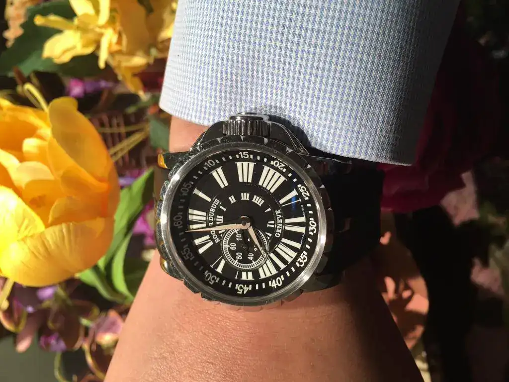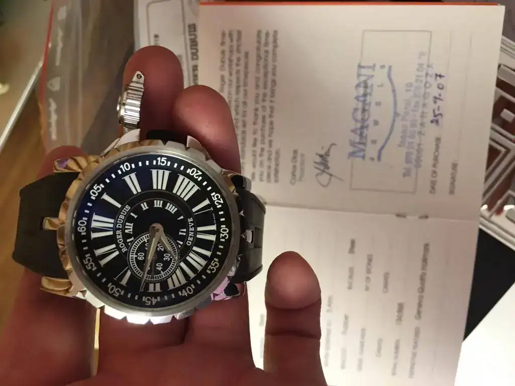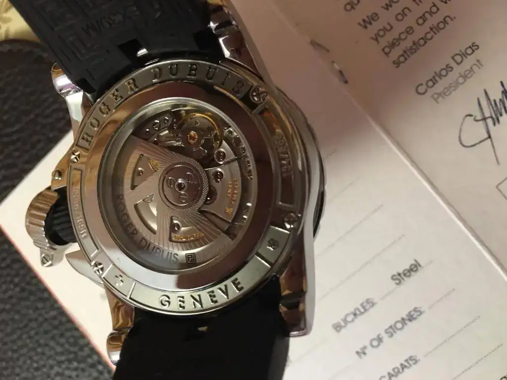 Cambio Roger Dubuis Excalibur 39 Edicion Limitada de 888 piezas con punzón de Ginebra, tiene caja de 39mm mas la corona total mide 42mm tamaño ideal, una calidad impresionante y acabado perfecto.