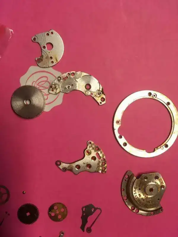 A ver como explico el tema, tengo un movimiento y una esfera de un rolex gmt 1675, que estaban oxidadas, mucho tiempo "a remojo"...
