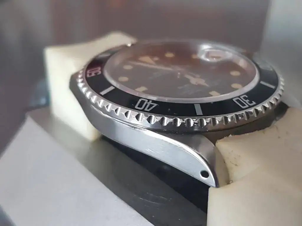 La caja del reloj está en muy buen estado, con unas asas donde el biselado todavía se aprecia muy bien, pero que ciertamente ha tenido alguna pulida.