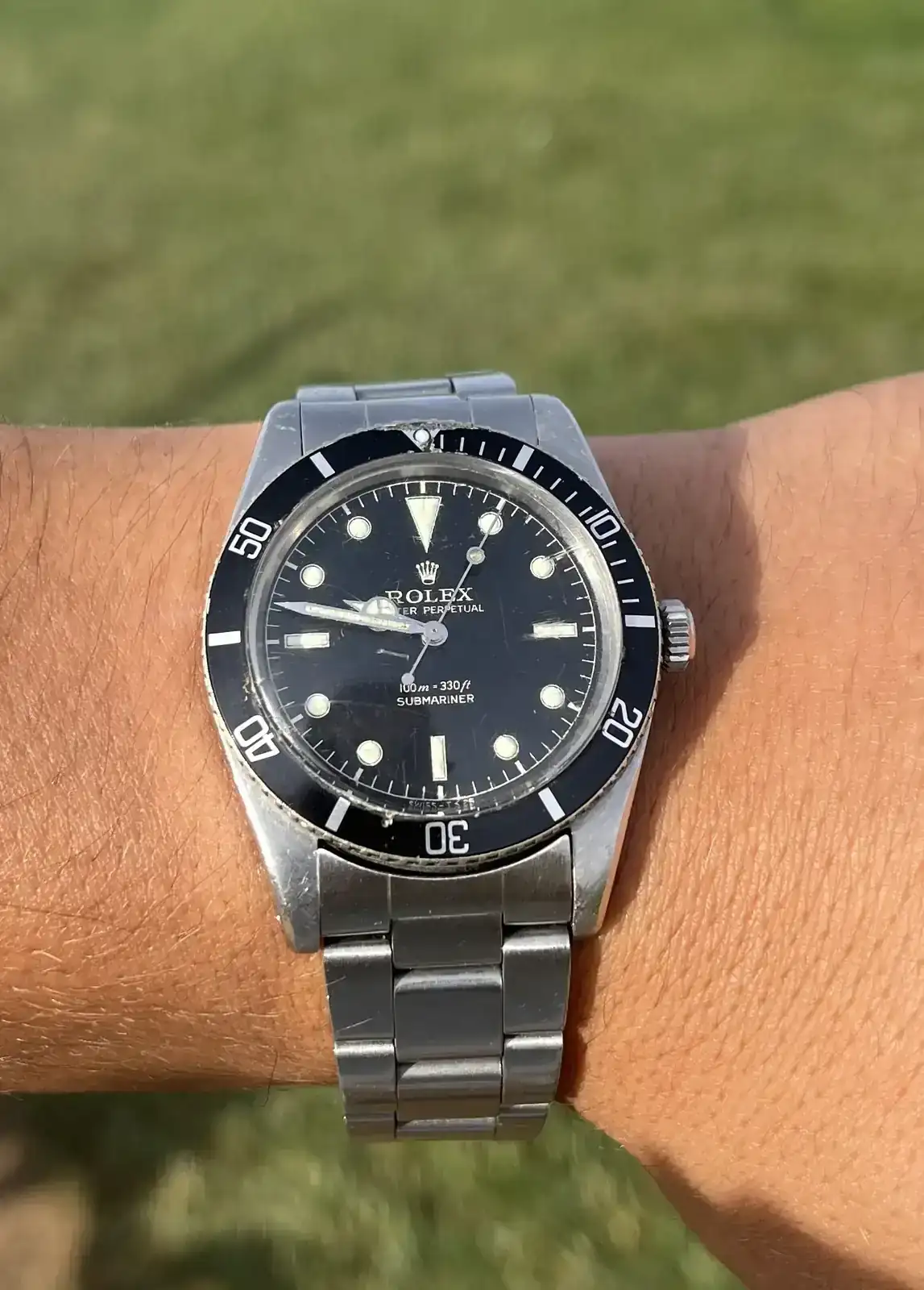 La historia es muy larga, mi padre lo heredó de mi padre. En su momento lo llevó a casa oficial y no sé qué le hicieronTienes un reloj raro y difícil de ver. No obstante no es original. Me explico, no salió así de fábrica. En algún servicio el dial, agujas, insert y probablemente el brazalete fueron sustituidos. Con los cual tienes una maravillosa referencia con piezas de servicio, antiguas, pero de servicio (originales por supuesto).