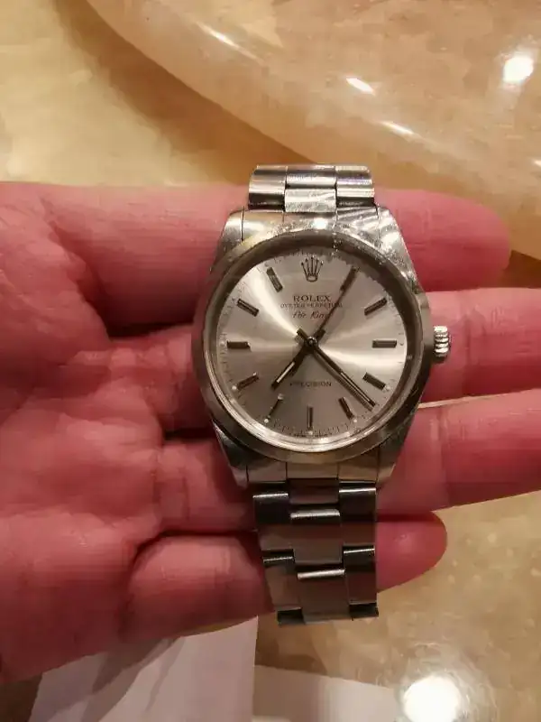 Pongo a la venta rolex air king 14000 del 91 aprox solo dispongo de reloj, esta en buen estado con eslabones completo y es de medida 34mm. Le pongo un precio de 2100€Marca:ROLEXModelo:14000Año de compra (nuevo):1991Estado (nuevo/usado): USADOMovimiento:AUTOMATICOCaja (medidas):34Cristal:ZAFIROEsfera: plata Brazalete:ACERO¿Estuche? (s/n): noDocumentación y tipo de la misma¿Garantía original SELLADA? (s/n): no¿Garantía vigente? (s/n): noPrecio (o cambio): 2100¿Envío incluido? (s/n): noForma de envío:MRW