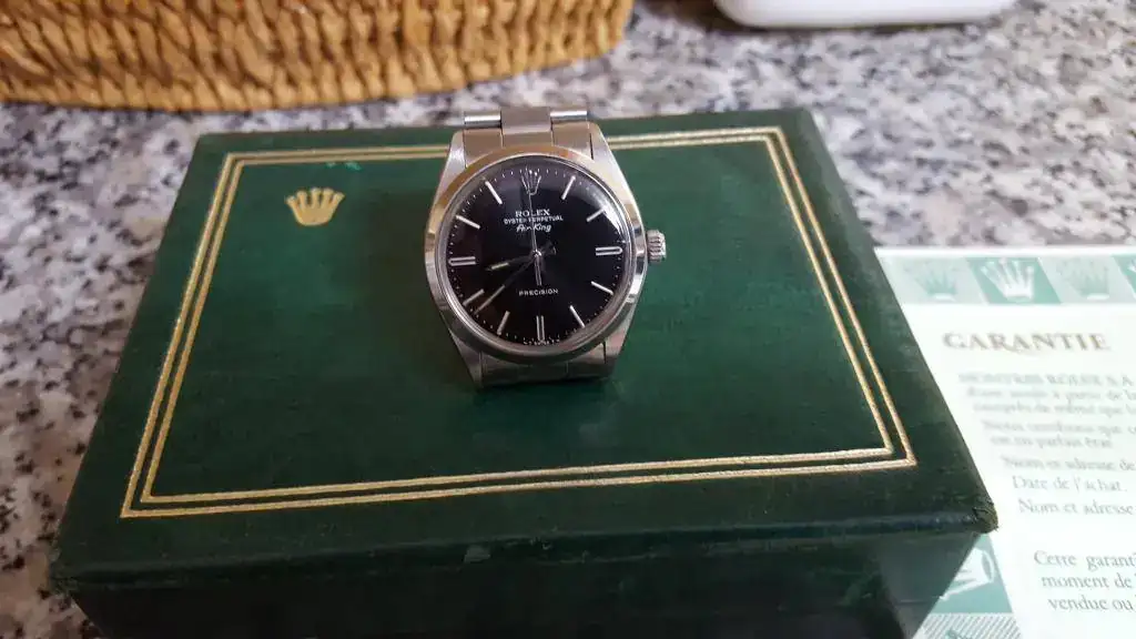 Vendo este Air king ref 5500 en perfectas condiciones de funcionamiento, esteticamente esta como nuevo. Tanto exterior como interiormente se encuentra en muy buenas condiciones, por eso lo compre en su dia. Se le hizo revision completa, con sustitución de muelle real, juntas y alguna otra pieza, hace unos ocho meses y desde estonces no se ha usado. Prueba de hermetismo hecha y superada, aunque yo no recomiendo mojar los relojes con plexi y/o antiguos.