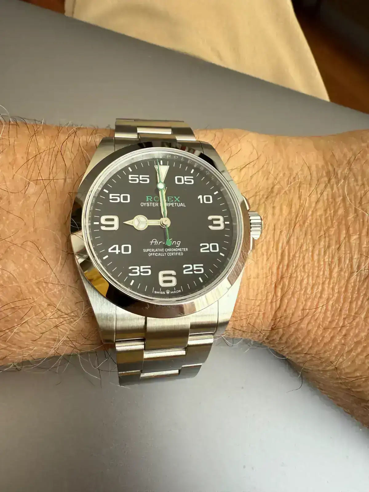 Es cierto que varios Explorer I tienen números arábigos, al igual que versiones antiguas del Air-King, pero esos números se suelen limitar al 3, 6 y 9, en tanto que la versión actual del Air-King (referencia 126900) sólo tiene números arábigos, excepción hecha del triángulo isósceles de las 00:00.