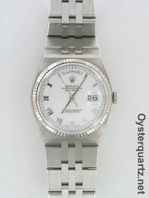 Rolex hizo 11 relojes Oysterquartz entre Ref 5335 (Datejust) y 5355 (Day-Date) en caja de acero. Fueron prototipos. Estos relojes cambiaban automáticamente el día (day-date) y la fecha correctamente, como un calendario perpetuo mecánico. Al ser un reloj de pila, no se consideraba necesario mostrar el año ni el mes, dado que el reloj no se pararía salvo en caso de cambio de batería.