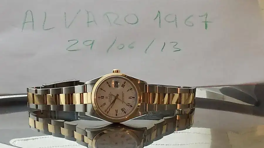 Estimados compañeros,vendo este Rolex Date, ref. 15203 en acero/oro con brazalete oyster.El estado es muy bueno, apenas tiene microarañazos del uso exceptuando la tapa que tiene alguna raya y una pequeña apenas visible endentadura en un eslabon (ver fotos). Serial K26xxxx que lo situa como produccion de 2001/2002.