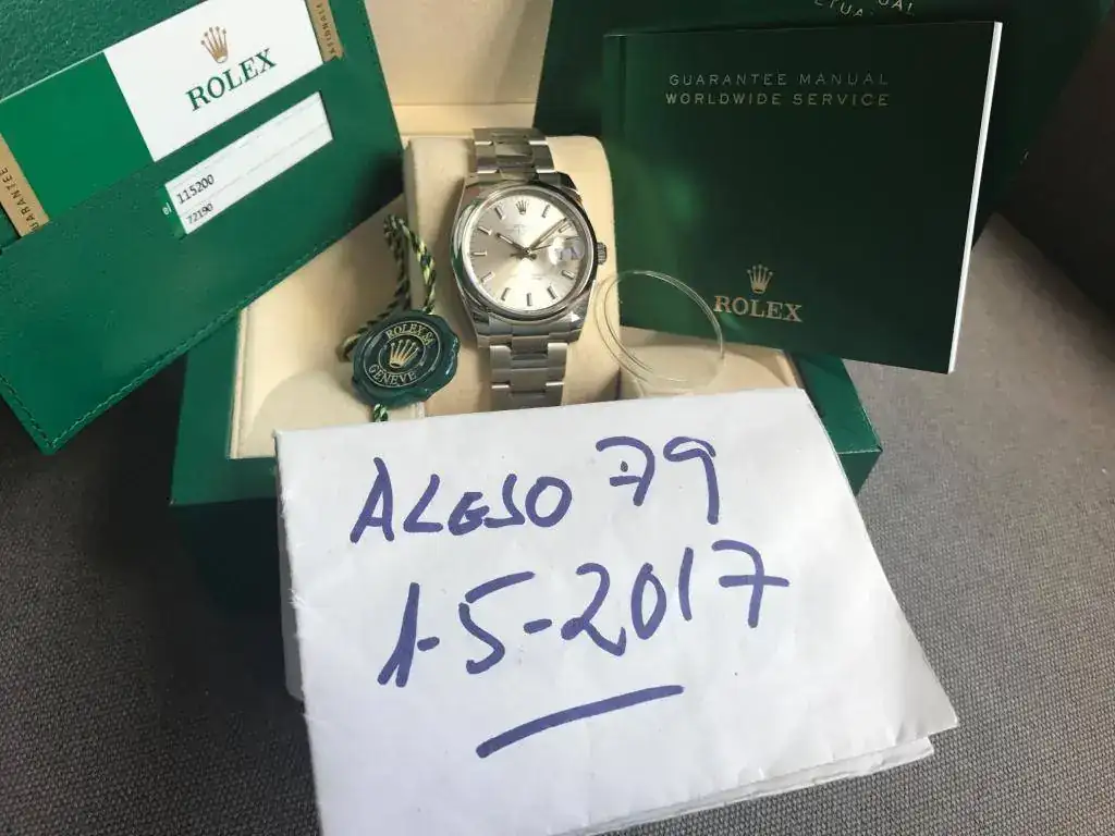 <br>Hola buenos días.<br><br>Con permiso del foro, saco para venta este precioso y elegante Rolex Date en un estado de absoluto reestreno. Tiene literalmente 4 puestas, por decir algo. Un reloj tanto para nosotros como para ellas.<br><br>En principio, estoy interesado en su venta, pero si me ofreces algún Rolex deportivo, pues todo sería hablarlo <img src="https://relojes-especiales.com/foros/images/smilies/winky.gif" border="0" alt="" title="Guiño" smilieid="12" class="inlineimg"><br><br>Podéis escribirme por privado ó al : 6 nueve 6 1 seis 05 cuatro 6<br><br>Sin más, pongo la tabla de rigor:<br><br><br><div class="cms_table" style="margin: 0px; padding: 1px; overflow-x: auto; overflow-y: hidden; color: rgb(51, 51, 51); background-color: rgb(250, 250, 250);"><table class="cms_table" style="border-collapse: collapse; border-spacing: 0px; font-size: inherit; margin-bottom: 1em;" width=""><tbody><tr valign="top" class="cms_table_tr"><td class="cms_table_td" style="margin: 0px; padding: 0.5em;"><strong>Marca:</strong></td><td class="cms_table_td" style="margin: 0px; padding: 0.5em;">ROLEX</td></tr><tr valign="top" class="cms_table_tr"></tr><tr valign="top" class="cms_table_tr"><td class="cms_table_td" style="margin: 0px; padding: 0.5em;"><strong>Modelo:</strong></td><td class="cms_table_td" style="margin: 0px; padding: 0.5em;">DATE</td></tr><tr valign="top" class="cms_table_tr"><td class="cms_table_td" style="margin: 0px; padding: 0.5em;"><br></td><td class="cms_table_td" style="margin: 0px; padding: 0.5em;"><br></td></tr><tr valign="top" class="cms_table_tr"><td class="cms_table_td" style="margin: 0px; padding: 0.5em;"><strong>Referencia:</strong></td><td class="cms_table_td" style="margin: 0px; padding: 0.5em;">115200</td></tr><tr valign="top" class="cms_table_tr"><td class="cms_table_td" style="margin: 0px; padding: 0.5em;"><strong>Movimiento:</strong></td><td class="cms_table_td" style="margin: 0px; padding: 0.5em;">AUTOMATICO</td></tr><tr valign="top" class="cms_table_tr"><td class="cms_table_td" style="margin: 0px; padding: 0.5em;"><strong>Funciones:</strong></td><td class="cms_table_td" style="margin: 0px; padding: 0.5em;">HORA-FECHA</td></tr><tr valign="top" class="cms_table_tr"><td class="cms_table_td" style="margin: 0px; padding: 0.5em;"><strong>Caja:</strong></td><td class="cms_table_td" style="margin: 0px; padding: 0.5em;">34 MM</td></tr><tr valign="top" class="cms_table_tr"><td class="cms_table_td" style="margin: 0px; padding: 0.5em;"><strong>Cristal:</strong></td><td class="cms_table_td" style="margin: 0px; padding: 0.5em;">ZAFIRO</td></tr><tr valign="top" class="cms_table_tr"><td class="cms_table_td" style="margin: 0px; padding: 0.5em;"><strong>Esfera:</strong></td><td class="cms_table_td" style="margin: 0px; padding: 0.5em;">CHAMPAGNE</td></tr><tr valign="top" class="cms_table_tr"><td class="cms_table_td" style="margin: 0px; padding: 0.5em;"><strong>Brazalete:</strong></td><td class="cms_table_td" style="margin: 0px; padding: 0.5em;">OYSTER</td></tr><tr valign="top" class="cms_table_tr"><td class="cms_table_td" style="margin: 0px; padding: 0.5em;"><strong>Cierre:</strong></td><td class="cms_table_td" style="margin: 0px; padding: 0.5em;">ACERO</td></tr><tr valign="top" class="cms_table_tr"><td class="cms_table_td" style="margin: 0px; padding: 0.5em;"><strong>Estuche y documentación:</strong></td><td class="cms_table_td" style="margin: 0px; padding: 0.5em;">COMPLETO</td></tr><tr valign="top" class="cms_table_tr"><td class="cms_table_td" style="margin: 0px; padding: 0.5em;"><strong>Año de compra:</strong></td><td class="cms_table_td" style="margin: 0px; padding: 0.5em;">2016</td></tr><tr valign="top" class="cms_table_tr"><td class="cms_table_td" style="margin: 0px; padding: 0.5em;"><strong>Garantia:</strong></td><td class="cms_table_td" style="margin: 0px; padding: 0.5em;">OFICIAL ROLEX HASTA 2021<br></td></tr><tr valign="top" class="cms_table_tr"><td class="cms_table_td" style="margin: 0px; padding: 0.5em;"><strong>Estado:</strong></td><td class="cms_table_td" style="margin: 0px; padding: 0.5em;">4 PUESTAS. PRACTICAMENTE REESTRENO</td></tr><tr valign="top" class="cms_table_tr"><td class="cms_table_td" style="margin: 0px; padding: 0.5em;"> <br><strong>PRECIO: 3.950 €</strong><br></td><td class="cms_table_td" style="margin: 0px; padding: 0.5em;"><br></td></tr><tr valign="top" class="cms_table_tr"><td class="cms_table_td" style="margin: 0px; padding: 0.5em;"><br></td><td class="cms_table_td" style="margin: 0px; padding: 0.5em;"><br></td></tr></tbody></table></div><br><br><br><br><br><br><br><br><br style="color: rgb(51, 51, 51); background-color: rgb(250, 250, 250);">