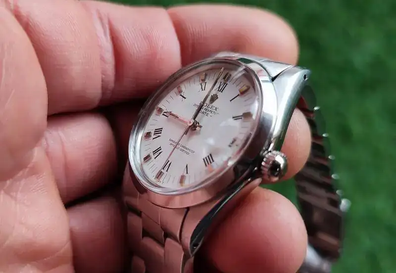 La verdad es que Rolex no es una marca que me haya gustado nunca demasiado, por su política de marketing prepotente y chufleta, por los précios ultrahinchados y porque siempre he relacionado rolex con alguien que quiere que se sepa que lleva un reloj caro, y esto último no me negareis que es cierto en muchos casos, pero también reconozco que mucha gente adora la marca por otros motivos muy distintos y lo entiendo y respeto, así que pido perdón si he herido los sentimientos de alguien haciendo yo mismo la revisión de un Rolex oyster perpetual date 34mm. de 1982.