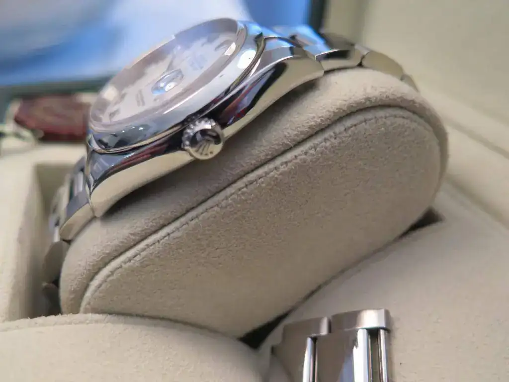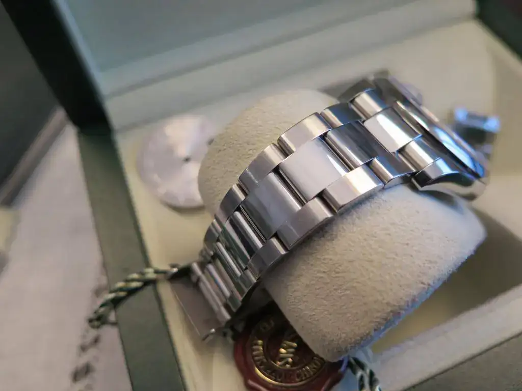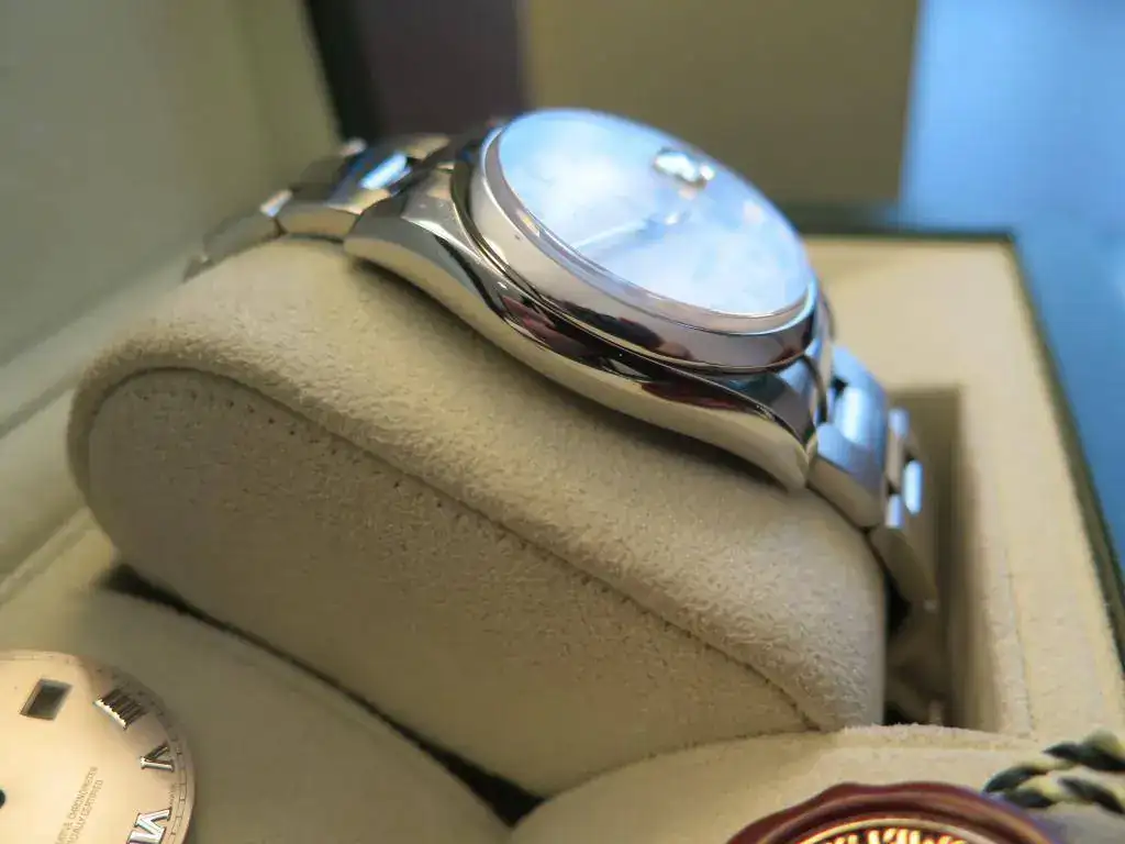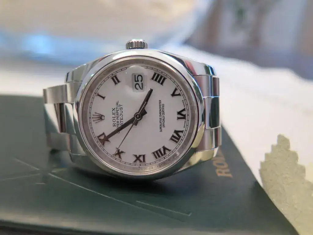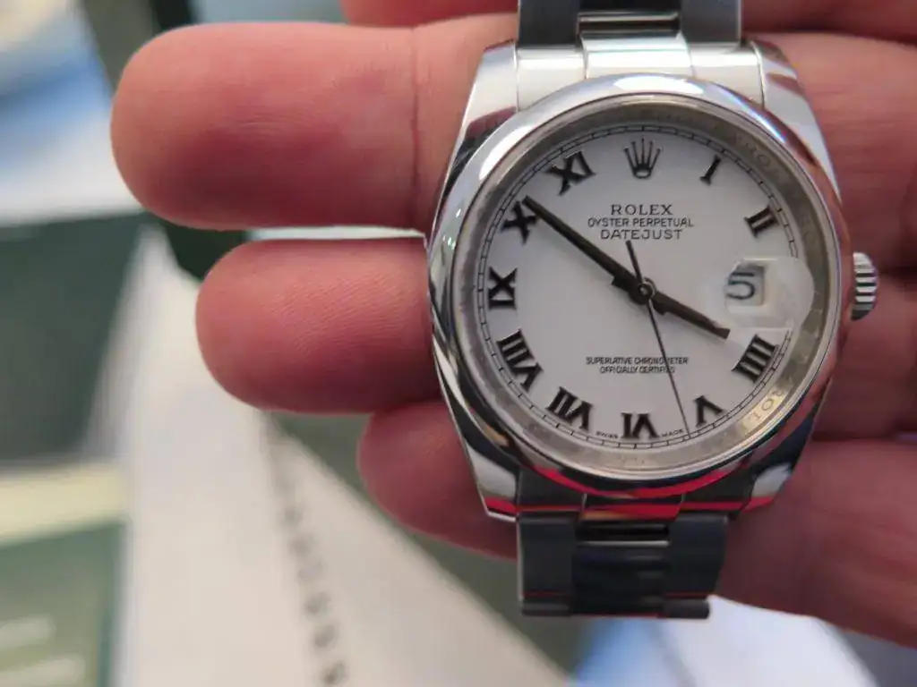 Muy a pesar mío saco a la venta este precioso Datejust en acero de 36 mm del año 2008 con aro de seguridad y esfera blanca con números romanos. El reloj esta completo y no tiene ningún golpe ni roce, salvo los típicos pelillos del cierre. El brazalete oyster completo con cierre oysterlock que permite un ajuste de 0,5cm para mayor comodidad. Además viene de regalo con una esfera gris. Le he dado muy poco uso, pero con la llegada del Daytona se que se va a quedar en la caja sin usar. No acepto cambios para esta pieza.