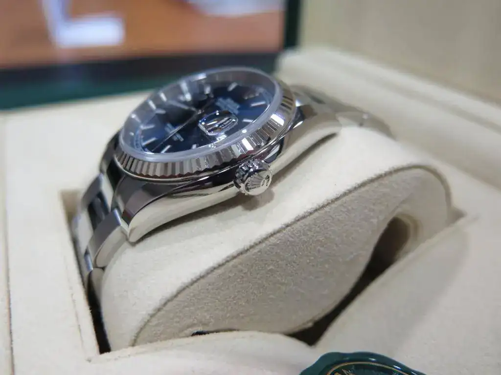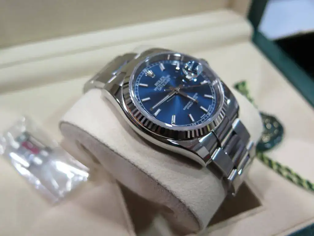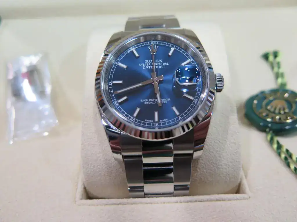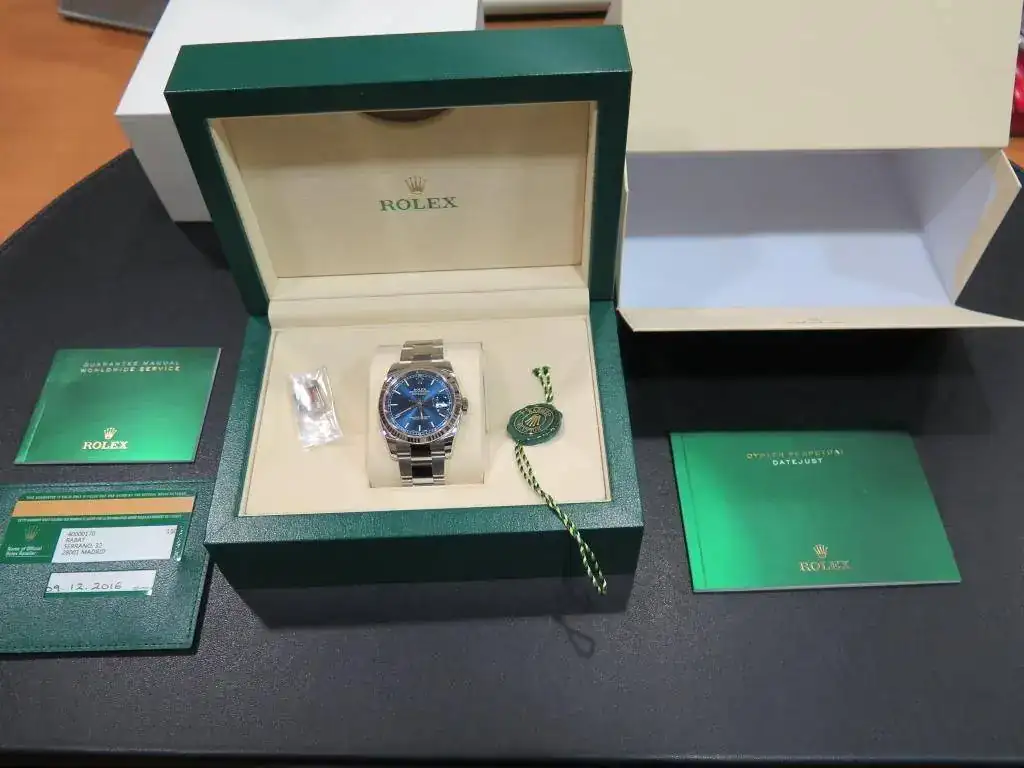 Buenas tardes, muy a mi pesar vendo este Rolex Datejust ref. 116234 con bisel en oro blanco y esfera azul. El reloj lo compré nuevo en Rabat el 9.12.16 y tiene garantía oficial hasta el 8.12.2021. El reloj viene completo con todo su set, caja, cubre caja, tarjetero y documentación, lacre verde (5 años garantía), tarjeta de garantía, armis completo. Su PVP son 7.300€ y lo saco a la venta con un 25% de descuento a 5.475€. Ha tenido muy pocas puestas, menos de 10 y me lo vendo porque no me lo pongo así como para compensar unos recién llegados. La caja esta de autentico reestreno sin pelillos, golpes, ni nada por el estilo. El armis esta nuevo, pero como es pulido a espejo hay unos mínimos pelillos que he intentado resaltar en las fotos, pero que son inevitables en este tipo de brazalete. Adjunto ficha y fotos. Si deseáis más fotos, videos o cualquier duda resolveré gustosamente por privado.
