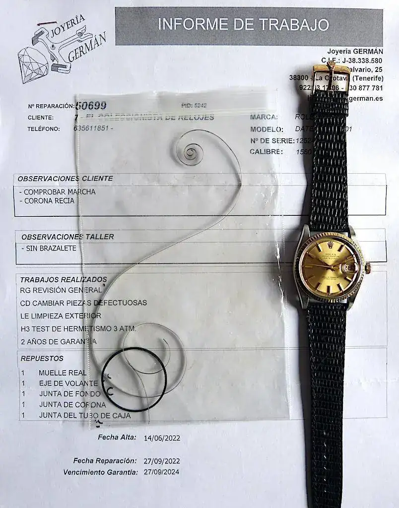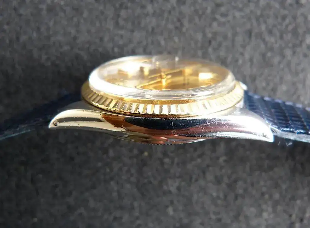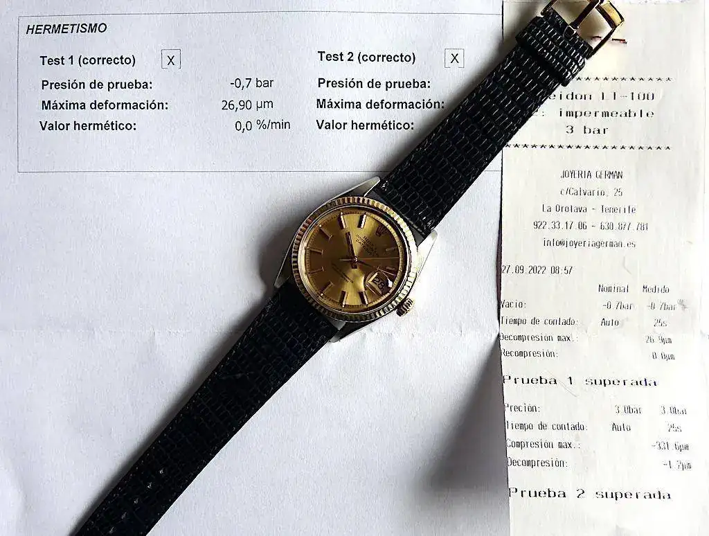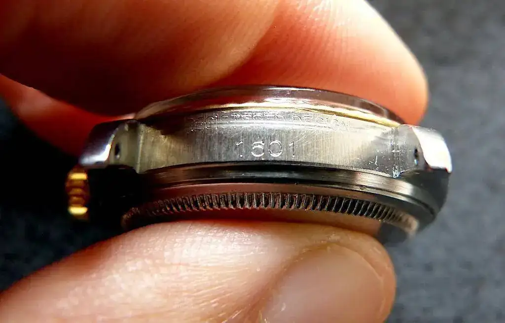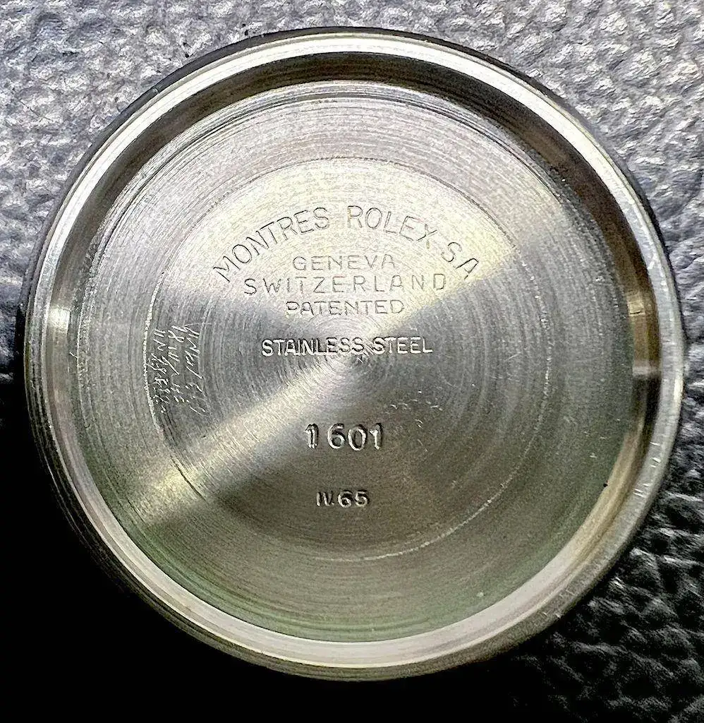 Fondo de caja original grabado 1601 año 65. Bonito bisel estriado de oro. Corona original y plexi nuevo.
