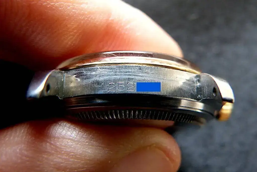 La caja seguramente ha sido pulida en algún momento pero de manera suave y conserva la forma original, no tiene abolladuras ni arañazos o defectos importantes. Tanto la referencia como los grabados de serie (1.252.xxx) son completamente legibles entre asas.